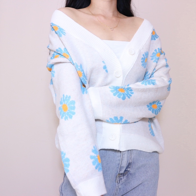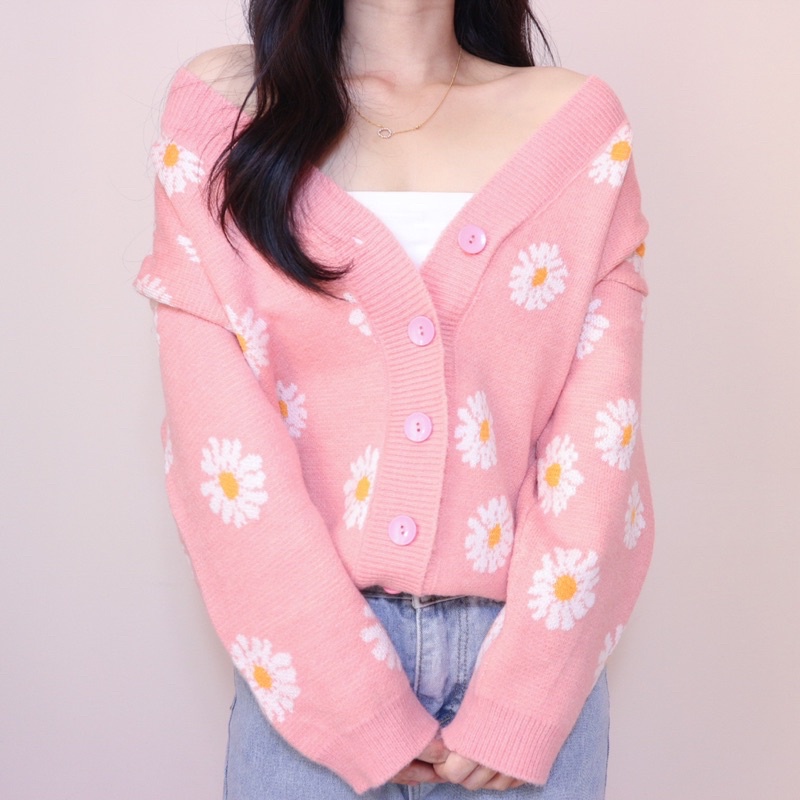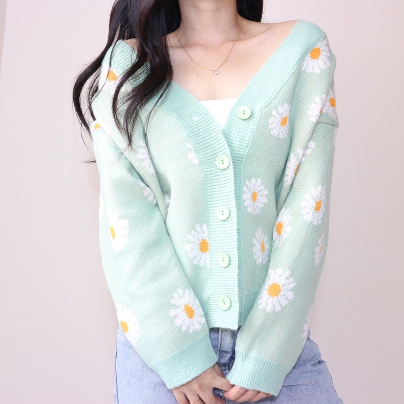 CARDIGAN RAJUT MINGYU OVERSIZE KANCING SQUARE | OUTER OUTWEAR KNIT MOTIF GARIS TEBAL